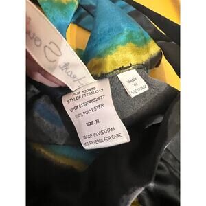 Heart Soul Womens Satin Blouse Sleeveless Abstract Smocked Hem Black Size XL NWT