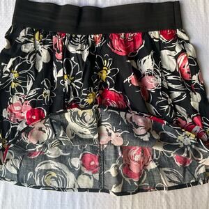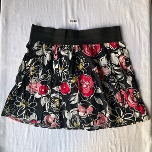 Heart Soul Women’s Sweet Floral Mini Skirt w Elastic Waist, size M, Black & Red