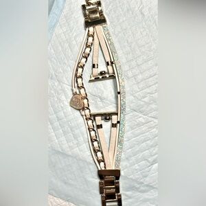 Elevate your Apple Watch with this exquisite bracelet, featuring a harmonious blend of glitter strap, white braid, and whimsical heart stone.