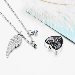 12 BIRTHSTONES: Each cremation necklace comes with 12 birthstones. Each birthstone has its different meaning. You can personalize your keepsake necklace with different birthstone and angel wing charm to match different outfit.
