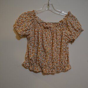 Heart and Arrow Peasant Style Blouse Short Ruffles White-Brown Floral Girls 14