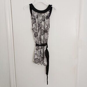 - NWOT Heart and Soul lightweight sheer chiffon black and white dressy sleeveless tunic with black satin ribbon belt