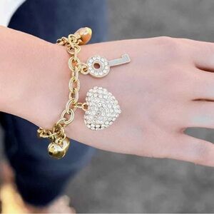 Heart charm bracelet with crystals keys hearts 7” + 2” extend