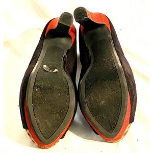 Heart in D Platform Peep Toe Pumps Black Red Faux Suede Stiletto Heel Size 8.