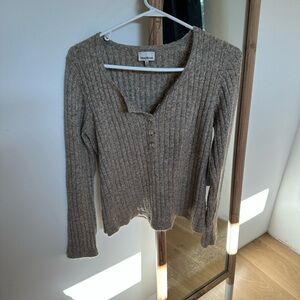 Cozy ribbed knit sweater with button detail. Perfect for layering.