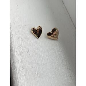 Heart of Gold Lovely Hammered Metal Puffed Heart Stud Earrings