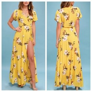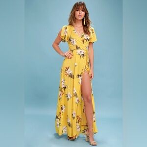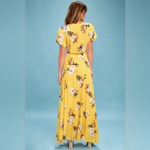 Heart of Marigold Yellow Tropical Print Wrap Maxi Dress 45064