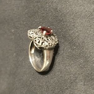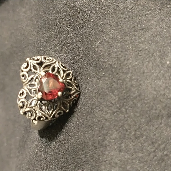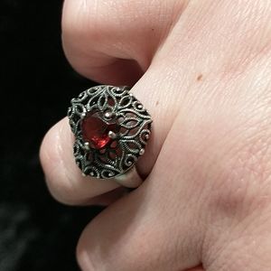 Beautiful Maroon gem heart ring. Silver I believe it is a size 7. Great gift!