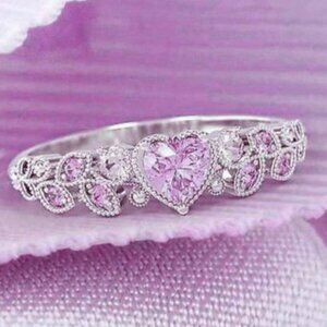 Heart shape CZ Eternity 925 Silver Plated Fashion Ring for Women, L085