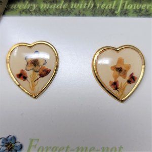 Heart shape Earrings Made w/ Real Flowers Forget me nots