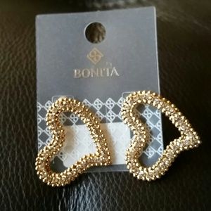 Heart shaped earings with rhinestones. Please note how the earing will look on the ear, sideways.NWoT