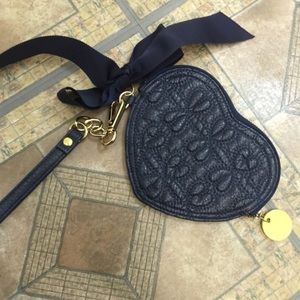 Heart shaped quilted navy & gold wristlet