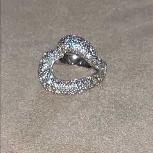 Sterling silver ring. Heart shaped. It has small diamonds on it.