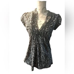 Heart & soul Size small v neck short sleeve zebra print design shirts excellent condition no flaws B43