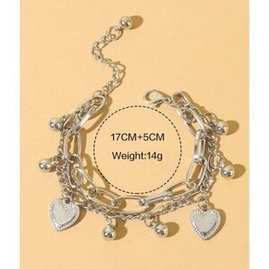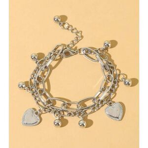 Beautiful and feminine silver heart charm bracelet. 2 rows of chains with bead and heart charms. Lobster claw clasp and extension chain. Measurements in photos. Adorable addition to any collection.