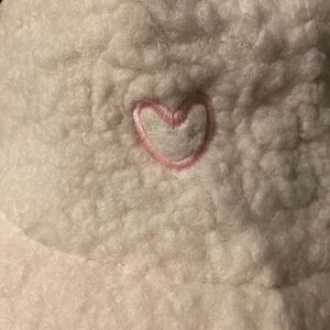 New! Heart embroidered fuzzy hat. Fluffy bucket hat with pink embroidered heart on front. Bundle to get 30% off.