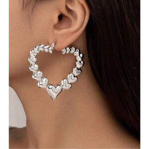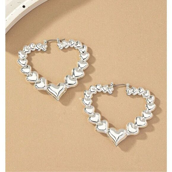 Beautiful, elegant and feminine silver heart pierced hoops that add style to any outfit. Hypoallergenic and medium weighted. Measurements in pictures.