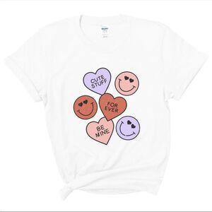 T shirt White Heart and smileys Valentine’s Day Cute!! Medium Excellent used condition
