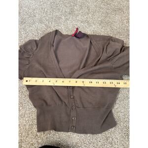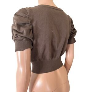 Heart-N-Crush cropped cardigan sweater puff sleeve button up MD Chocolate brown