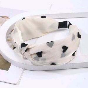 New! Heart headband. Cream headband with black hearts pattern and topknot. Bundle to get a discount.