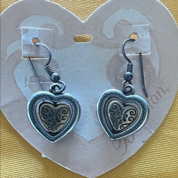 Brighton Elegant heart-shaped earrings in a classic silver tone. Heart reverses between silver and gold. Perfect for adding a touch of sophistication to any outfit.
