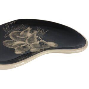 This charming heart-shaped ceramic plate showcases an enchanting handpainted depiction of koalas, capturing a sense of Australian wildlife. With its vintage appeal and intricate artistry, this plate serves as both an ornamental piece and a tribute to nature's beauty. It stands as a timeless piece for collectors and wildlife enthusiasts alike.