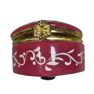 Heart-Shaped Ceramic Trinket Box Gold Hinged Lid White Floral valentine love