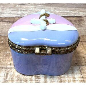 Heart-Shaped Ceramic Trinket Box With Cross & Gold Accents