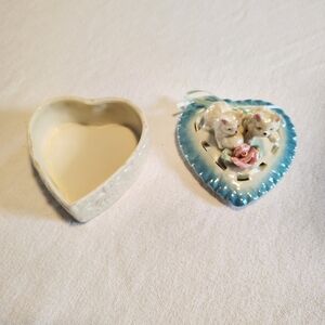 Vintage charming heart-shaped ceramic figurine featuring two adorable cats.