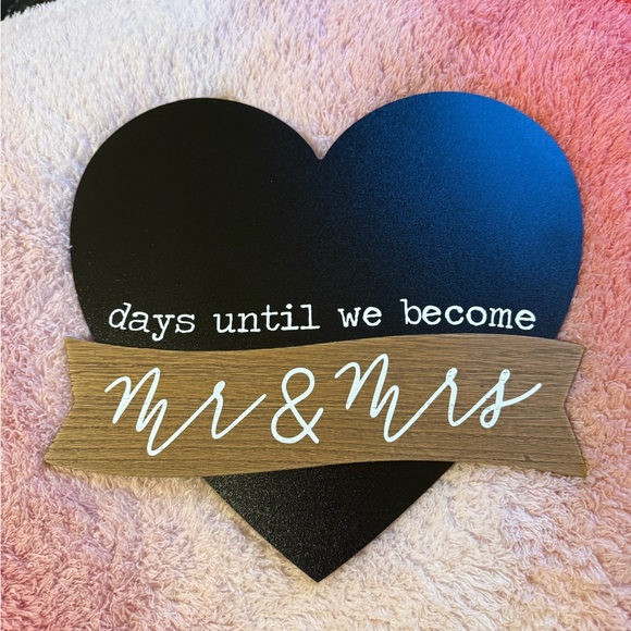 Heart-shaped sign with 'days until we become Mr & Mrs' text. Perfect for wedding countdowns.