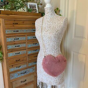 Heart Shaped Furry Crossbody Bag W/Gold Chain - 70's Retro - Dark Pink - NWT
