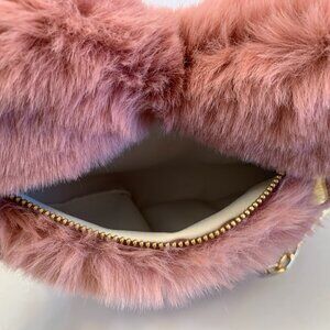 Heart Shaped Faux Fur Crossbody Bag W/Gold Chain - 70's Retro - Dark Pink - NWT