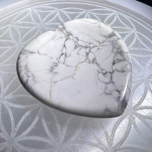 Versatile howlite heart dish ideal for holding rings, crystals, or herbs. A calming accent for altar setups, vanity trays, or meditation corners. Perfect for gifting or resale in metaphysical, boho, or cottagecore