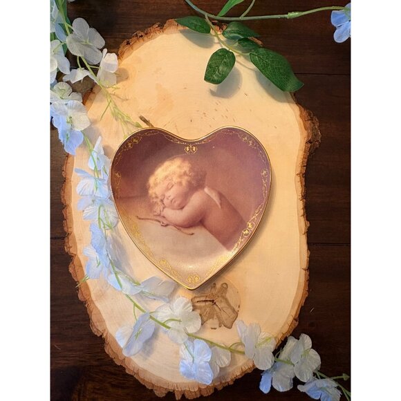 Heart-Shaped Porcelain Decorative Plate "Sweet Slumber" Angel Art & Gold Limited