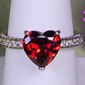 Heart-Shaped Red Solitaire Ring With Accented Band Size 8 (NWOT)