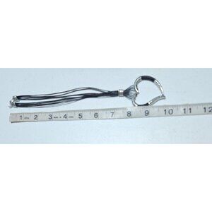 Heart-Shaped Silver Tone Pendant Necklace Black Multi Strand Cord Jewelry Women