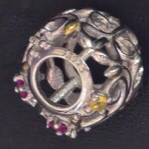 This charm whispers tales of elegance and grace, adorned with intricate floral motifs and vibrant pink and yellow stones. Perfect for adding a touch of beauty to your bracelet, its heart shape symbolizes love and warmth, making it a cherished piece for personal or gifting purposes.