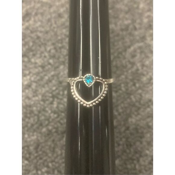 Ladies super cute silver colored textured heart shaped statement ring with blue stone. Excellent condition. New with tags. Made from hypoallergenic nickel and lead free metal. Unisex adult size 7