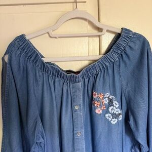 HeartSoul Embroidered Chambray Top Plus Size 1X Boho