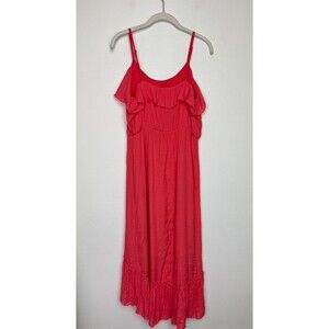 HeartSoul Large Ruffle Maxi Dress Red Strappy Sleeveless Scoop Neck High Low Hem