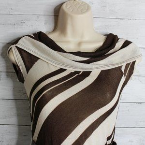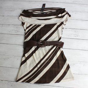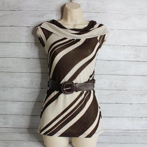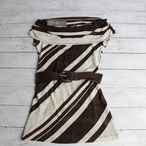HeartSoul Women's Tunic Sweater Size XS Brown Beige Stripe Belted