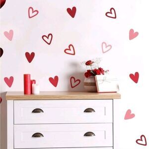 Heart wall stickers/decals. Removable. PVC waterproof. Can be used on the wall, mirror, window, etc. One set of stickers. Each heart is approximately 2.5”. Three sets available for purchase. Bundle to get a discount.