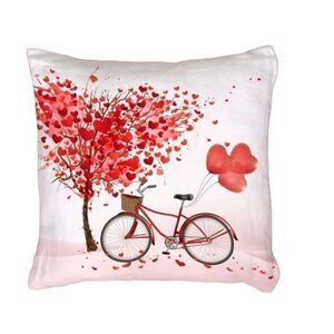 New. Heart and bicycle print pillow cover. Zippered closure. Approximately 17.7x17.7“. Insert not included. reasonable offers welcome.
