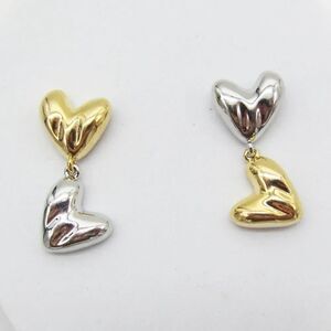 Double heart drop dangle stud earrings in silver and gold tone hardware