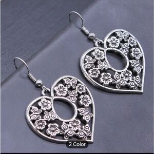 Heart earrings flower vintage dangle drop new f2