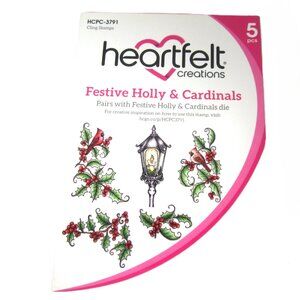 Heartfelt Creations Festive Holly & Cardinals Cling Stamps 5 Pcs Christmas