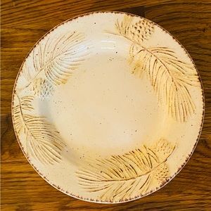 “Heartfelt Kitchen Creations” from Young’s Pine Branch and Pine Cones, Browns/Cream; 4 dinner plates; 4 sandwich plates; 3 canisters & pitcher