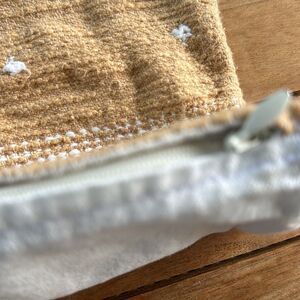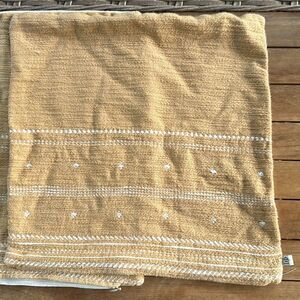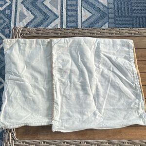 Tannish yellow & white neutral textured pillow covers with solid white back in VGUC.
