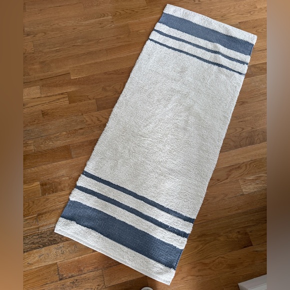 Good condition, used but has been washed, blue striped pattern, machine washable 24” x 60”