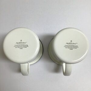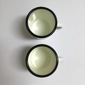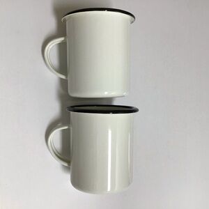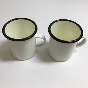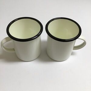 Hearth & Hand Enamelware PAIR Metal Mugs White Black Rim Farmhouse Camping RV